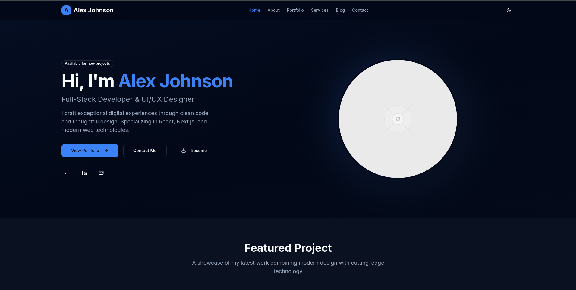 A modern and responsive portfolio website template designed specifically for developers to showcase their skills, experience, and projects effectively.